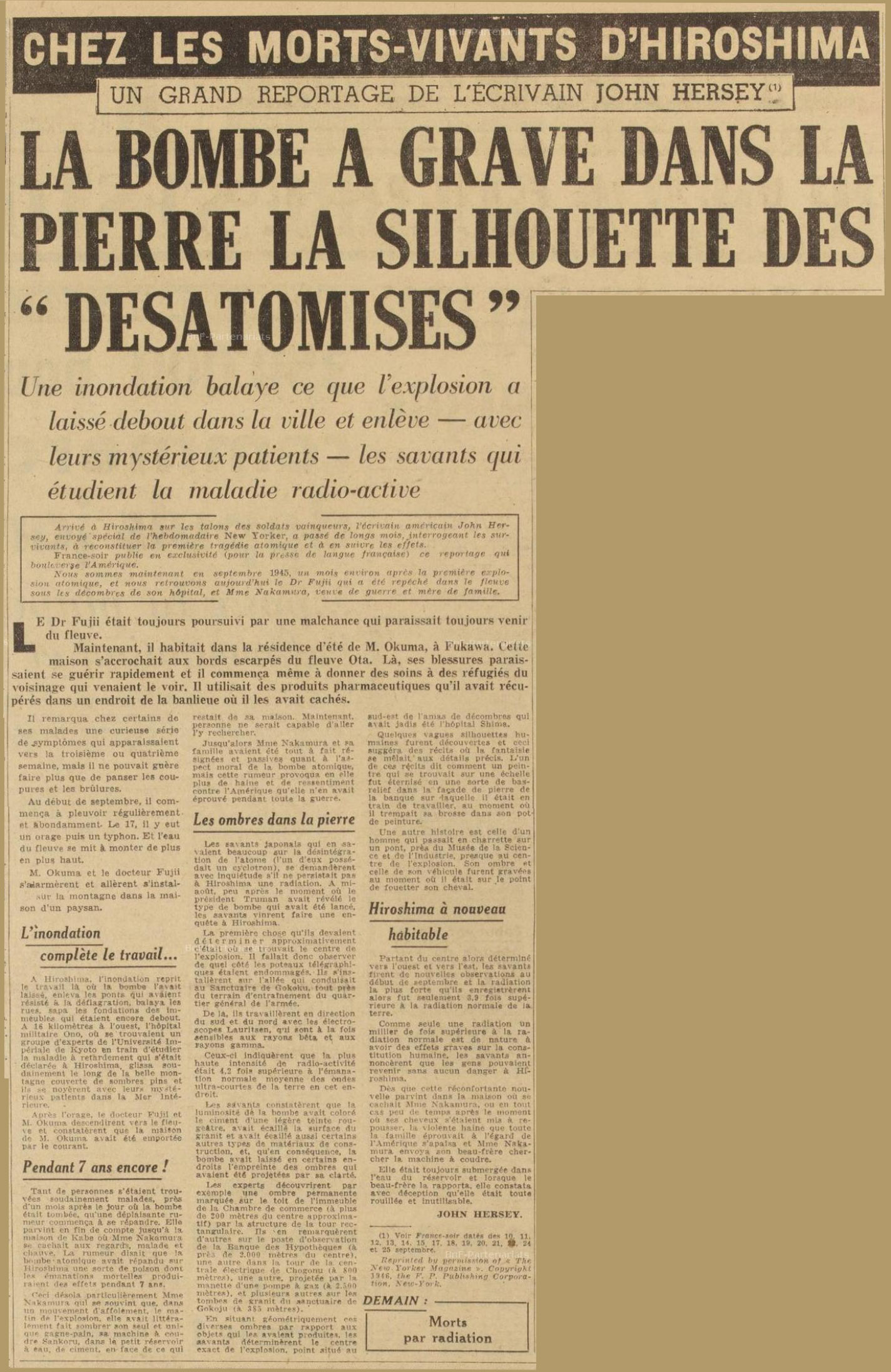 J'ai vécu avec les "atomisés" publiés dans France-Soir en 1946 :