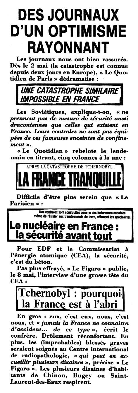 être rassurée. L'enseignement de Tchernobyl qu'on