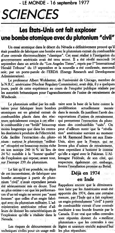 Le rapport WASH-740, dit "rapport Brookhaven", de 1957 sur les conséquences d'accident majeur dans une centrale nucléaire (et sa mise à jour WASH-1400 pour montrer que sa probabilité était négligeable), comment évaluer le coût de risque nucléaire (Pdf)