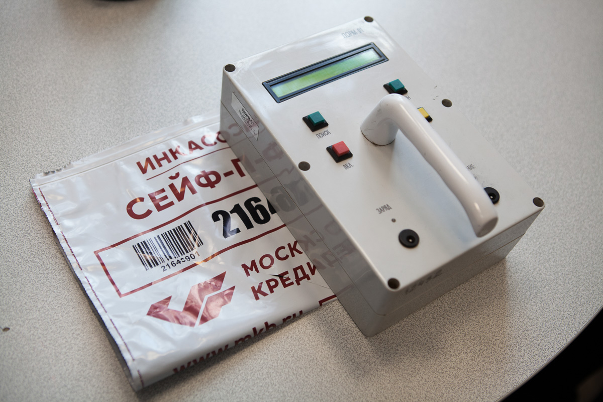 Si le collecteur pénètre dans les locaux sans déclencher le dosimètre, il se rend à la caisse, où le caissier vérifie les sacs d'argent déposés à l'aide d'un appareil portatif. Aux caisses des agences bancaires, la procédure est exactement la même. Le client a apporté de l'argent liquide - le caissier prend le dosimètre.