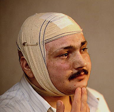 à plusieurs reprises les mains, les avant-bras, la tête,