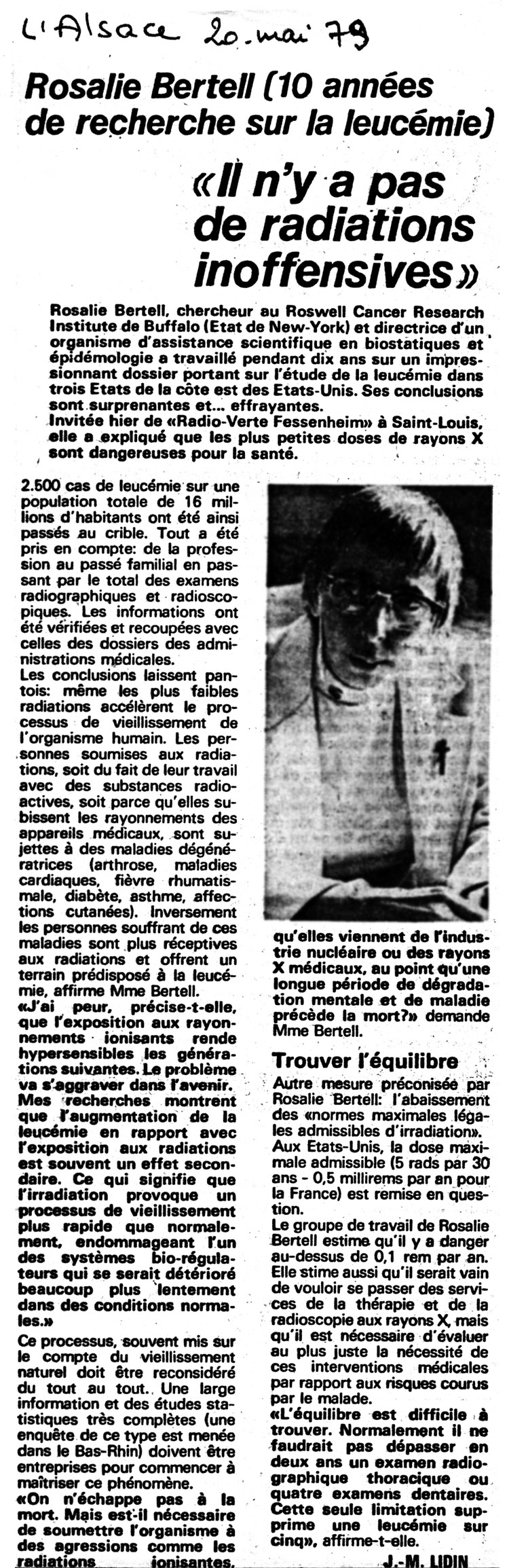 Ainsi, les travaux du docteur Bertell, réalisés