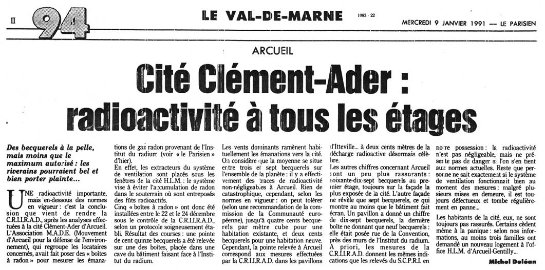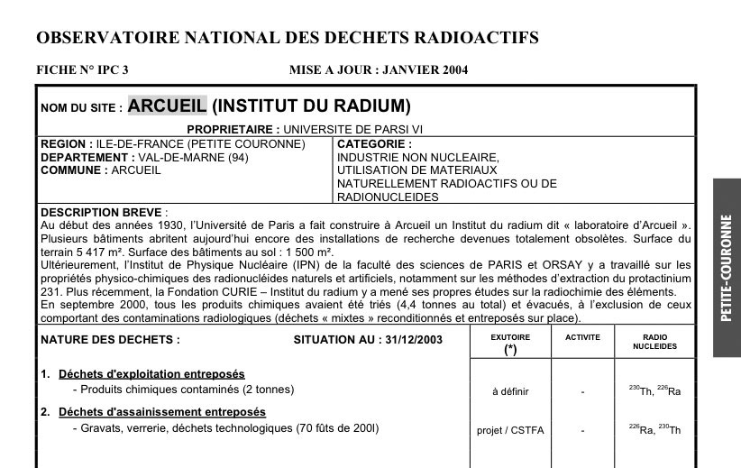d'Arcueil et des ouvriers qui interviennent sur ce site radioactif