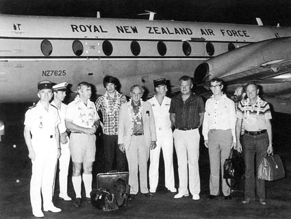 Ainsi, quatre missions scientifiques ont été envoyées sur place: la mission Tazieff en 1982, la mission Atkinson en 1984 [en 1983, voir photo ci-dessous], la mission Cousteau en 1987 et la mission A.I.E.A. (Agence Internationale à l'Énergie Atomique) en 1991. Bien que toutes ces missions aient été considérées uniquement comme exploratoires - le rapport Greenpeace de mars 1992 souligne cet aspect - elles n'ont pu apporter la preuve scientifique d'une quelconque situation alarmante. Cependant, les répercussions des essais nucléaires français sur les êtres humains et l'environnement restent un sujet controversé puisque, depuis 1988, la Commission de l'environnement, de la santé publique et de la protection des consommateurs du Parlement européen désire envoyer en Polynésie française une commission d'experts indépendante et internationale sans avoir, jusqu'à ce jour, obtenu gain de cause.