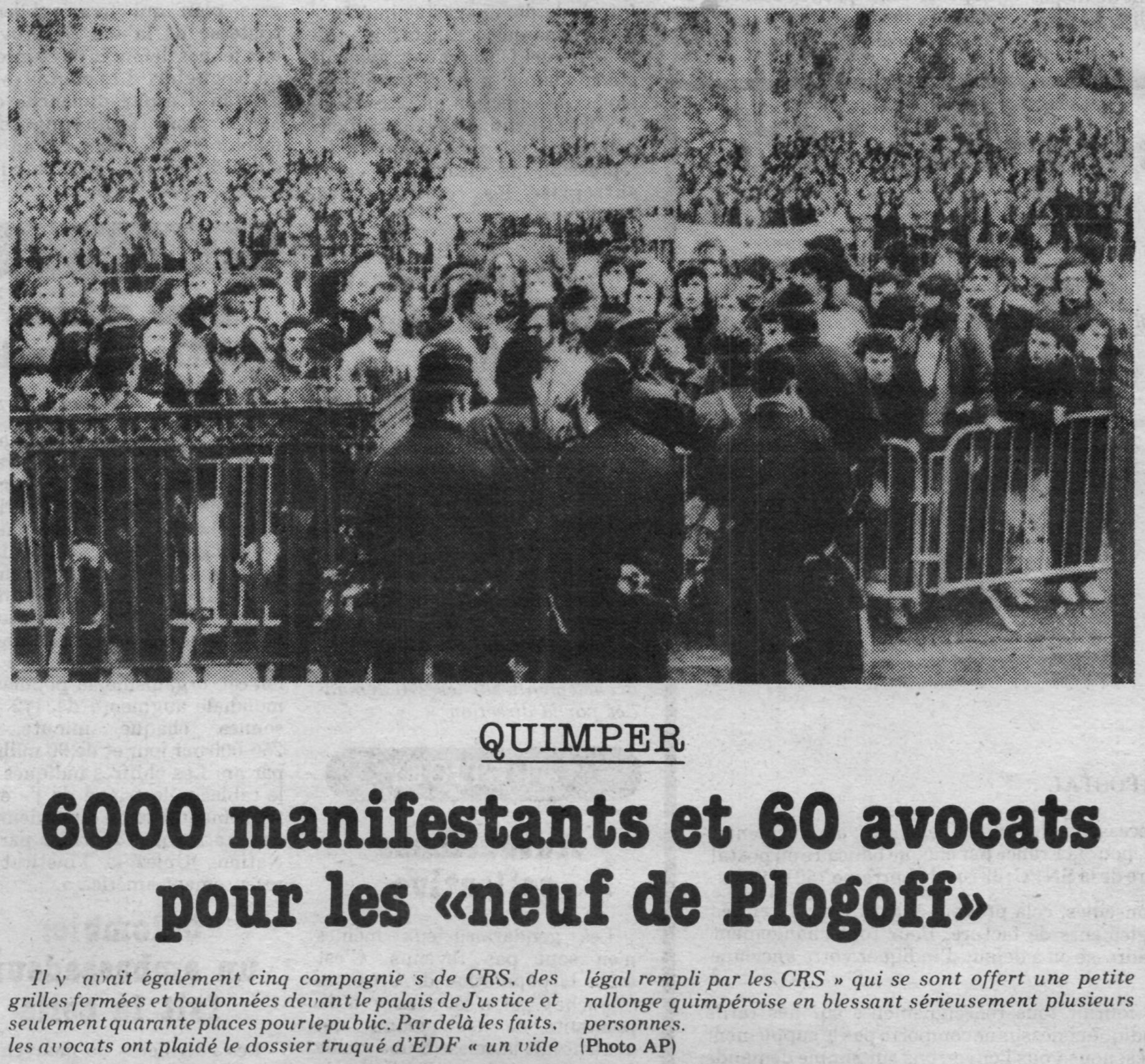 partie du procès de neuf inculpés de Plogoff. Interrompue,