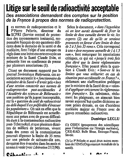 - Nous donnons ci-après un extrait du journal biélorusse Sovietskaya Bieloroussia qui figurait dans le dossier de presse remis aux participants de la conférence de presse du 9 avril 1990 avec sa photocopie en russe.