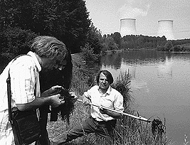 Prélèvement de fontinales effectué dans la Seine, le 24 juin 1989, par des militants du Comité Stop Nogent. (Photo D. Léonard). |