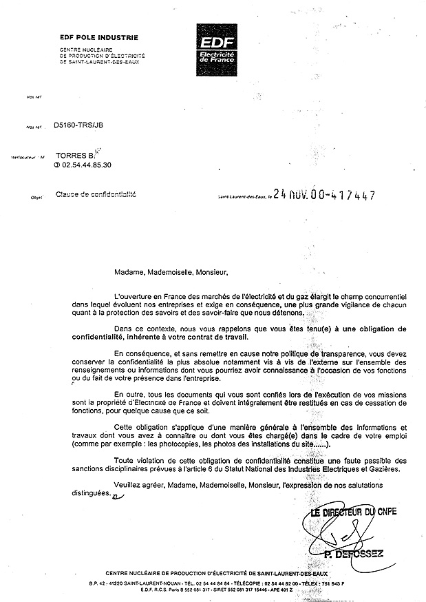 EDF de cette clause de confidentialité signifie limpossibilité